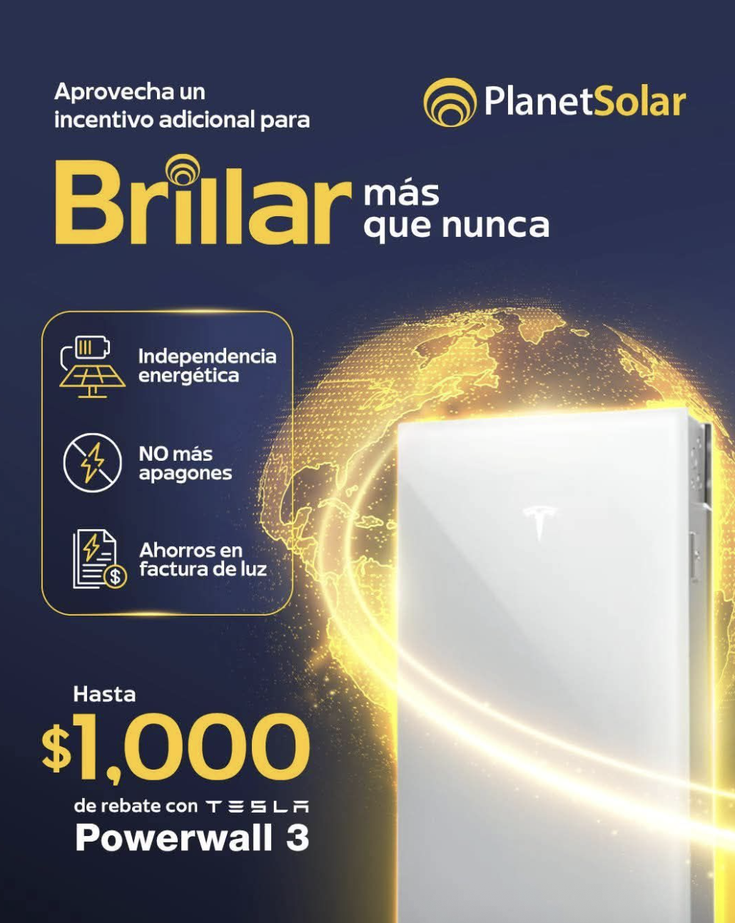 Aprovecha el incentivo adicional para integrar la batería más avanzada del mundo a tu sistema solar. Energía garantizada día y noche.